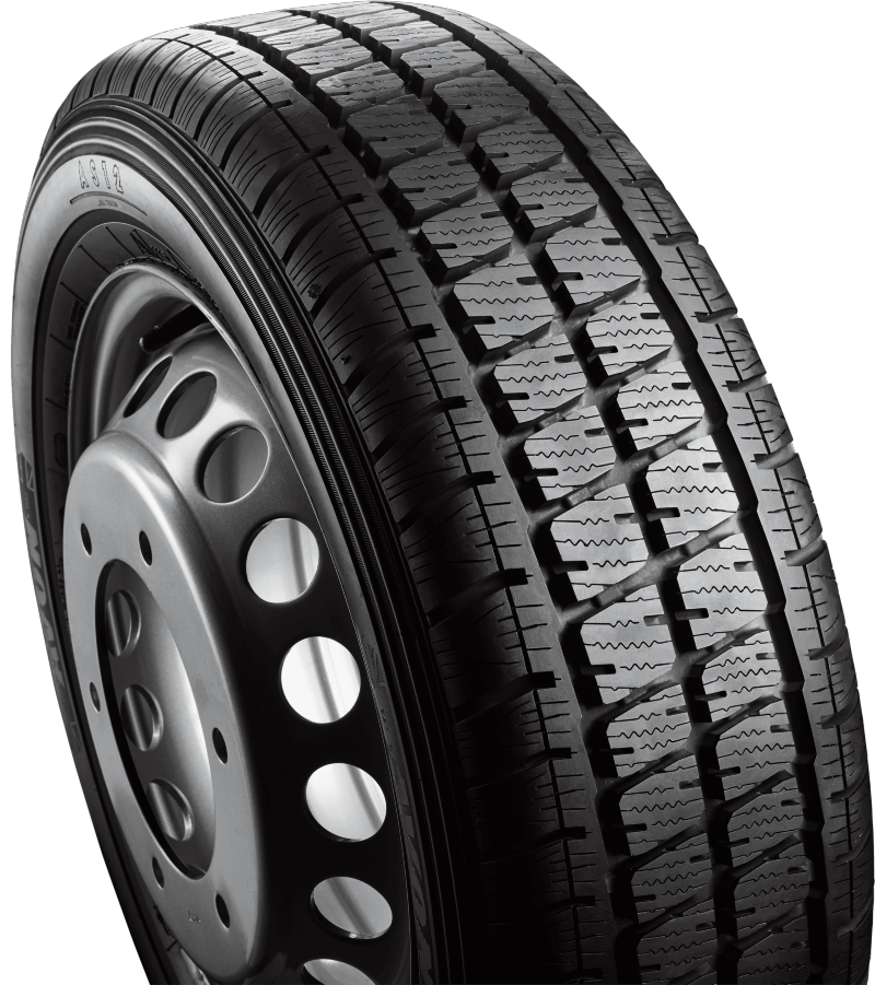 - Bande de roulement symétriqueEmpreinte uniforme avec des caractéristiques d'usure impressionnantes, offrant aux utilitaires des performances durables.